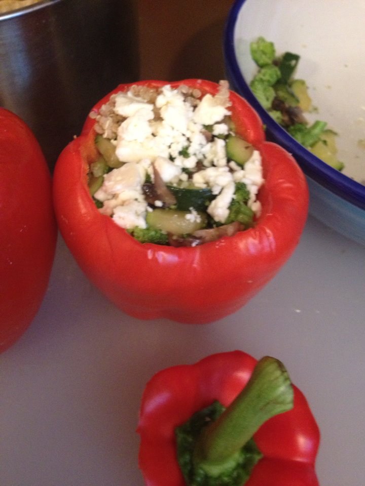 I layered all of the ingredients in the peppers, and then added some feta on top!