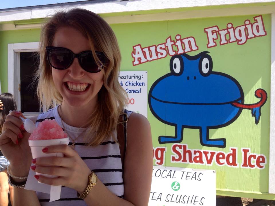 Today we checked out yet another spot in Austin that I had never been to before. We drive up and down South Lamar enough, so I figured it was only a matter of time before we pulled over and tried the Frigid Frog Shaved Ice truck that always caught my eye.