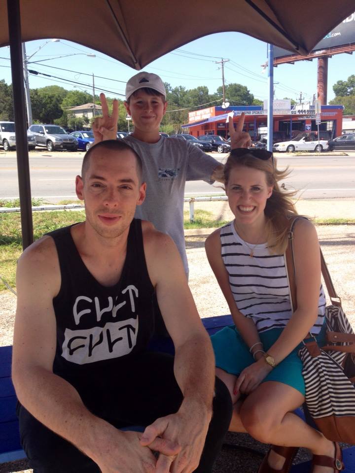 I got a Barbie, which was a MIX of Cotton Candy and Wedding Cake. Our little buddy Hayden, the one giving us bunny ears in the pic below, and along for the ride today, got Bevo, which was the burnt orange concoction of Orange Creamsicle and Vanilla. I couldn’t believe that they had the two flavors I wanted in one premade flavor, and hot pink to boot.