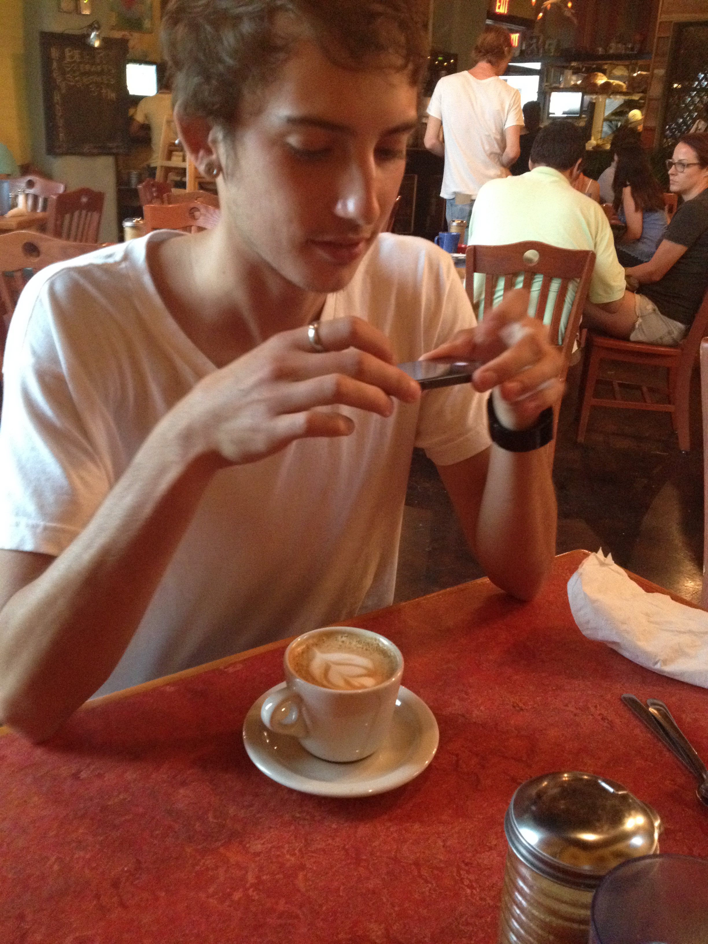 The first restaurant we went to with Derek was BOULDIN CREEK CAFE (where we go constantly). Our waitress sees us and is like table for two in the back? And Scott and I shocked her and say no, table for three! Derek got a cappuchino made with love and instagrammed it, and a veggie burger that was so delicious you couldn’t even tell it was healthy.
