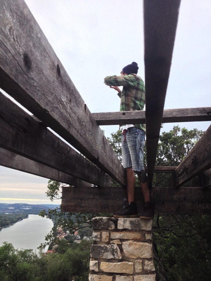 After driving up a windy, almost crumbling road in Austin, you arrive at the entrance of Mount Bonnell. There are cars parked everywhere and signs to lock your stuff, and then there are the majestic stone steps that lead to one of the best views in our city. It’s a romantic spot, and a beautiful one, with a really rustic Texas vibe and the river down below.