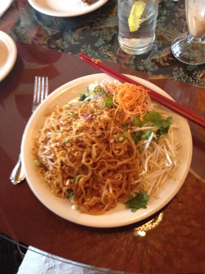 We got Thai iced tea to start, and I ordered pad Thai with chicken. We caught up and shared spring rolls and travel stories.