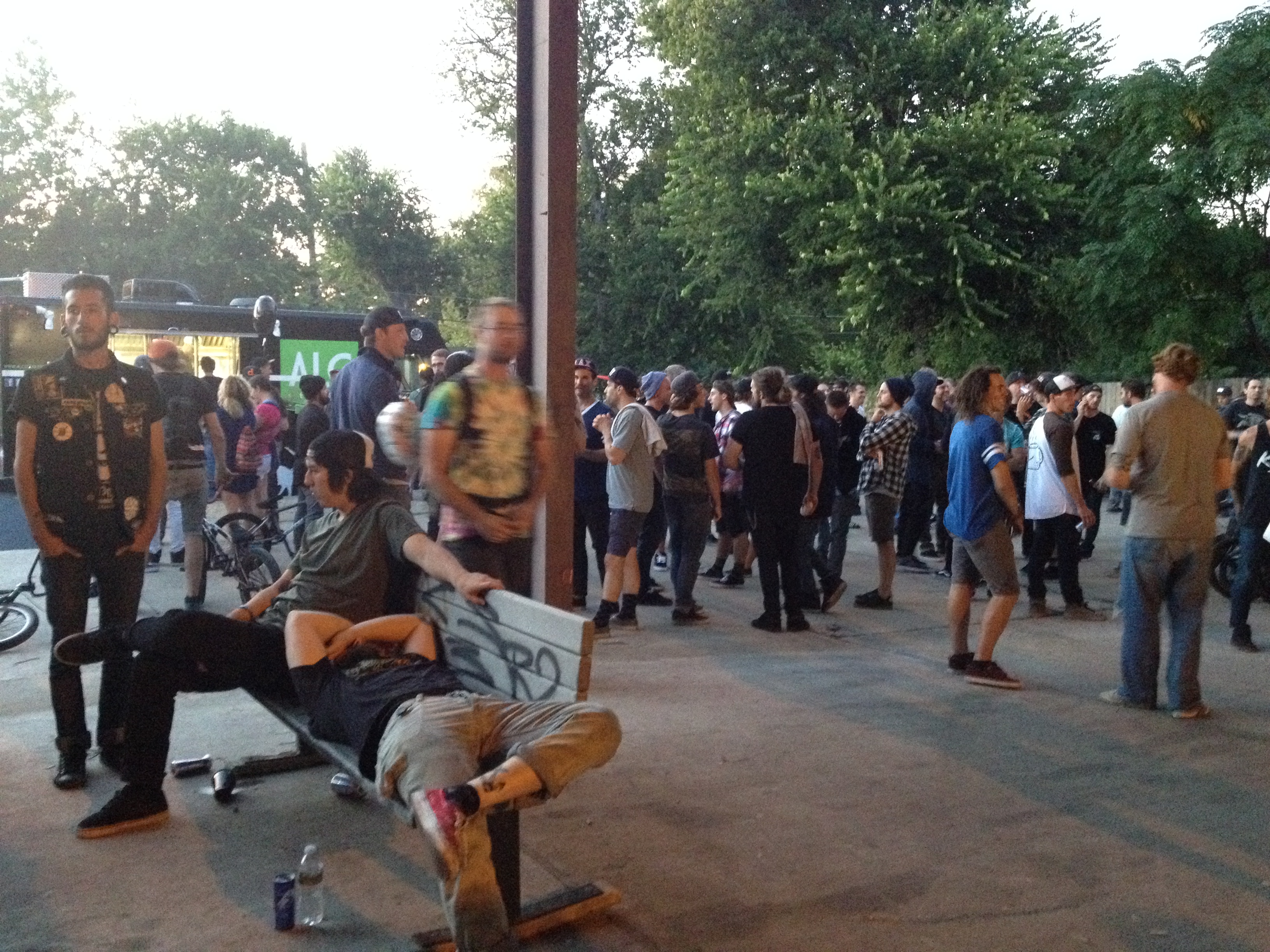 There were tons of people, and we jumped right in mingling. It was sunny and beautiful out, and more people just kept pouring down the driveway, arriving for the good time. There was a video premiering, tee shirts being screened for 10 bucks (I got one with a deer on it), and Scott’s former roommate manned the keg. Food was provided by ALC Steaks ON TOUR food truck, with House park staple Scottie taking orders inside.