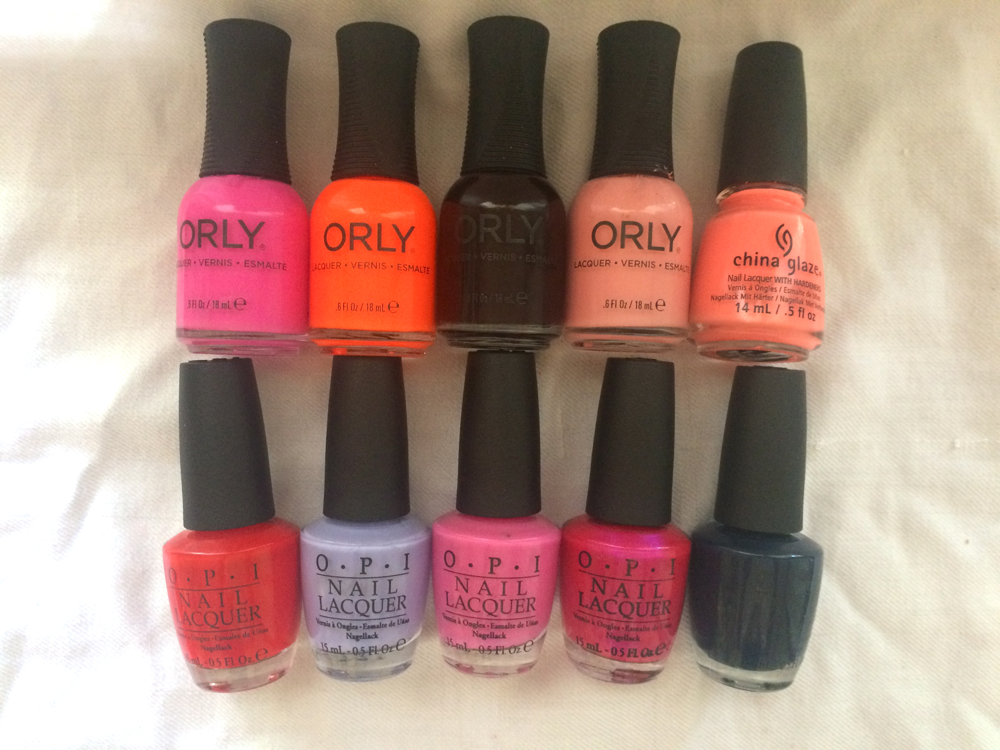 ORLY’s Naughty. OPI’s Fashion A Bow. OPI’s You’re Such a Budapest. OPI’s Shorts Story. ORLY’s Melt Your Popsicle.