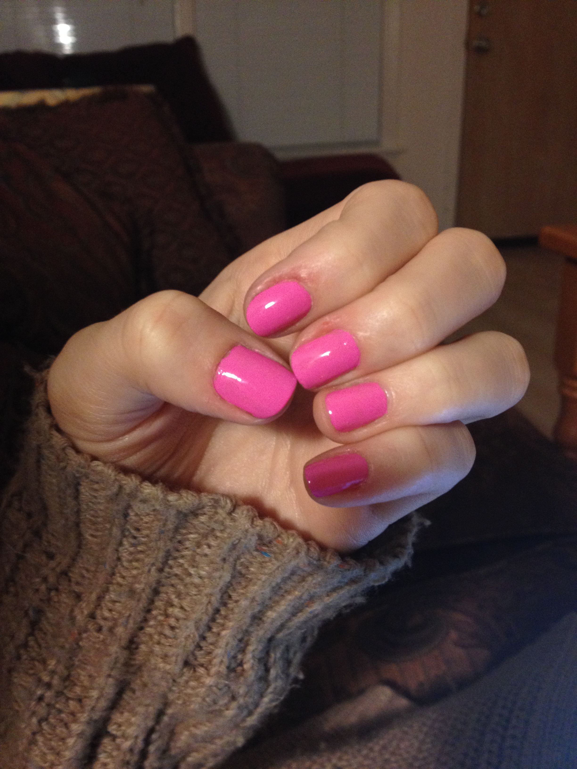 Fancy Fuchsia is one of my FAVORITE colors of all time. Every time I wear it, it completely cheers me up and I can’t stop staring at it. I feel like if Barbie came to life and got into the college of her dreams, she would wear this color to celebrate. It’s not too girly or young for a bubblegum pink, since the purple undertones grow it up a bit. Now that I’ve almost used this bottle up, it is getting a little thicker and harder to apply, but when I first bought it, it was perfect. Here it is on my nails: