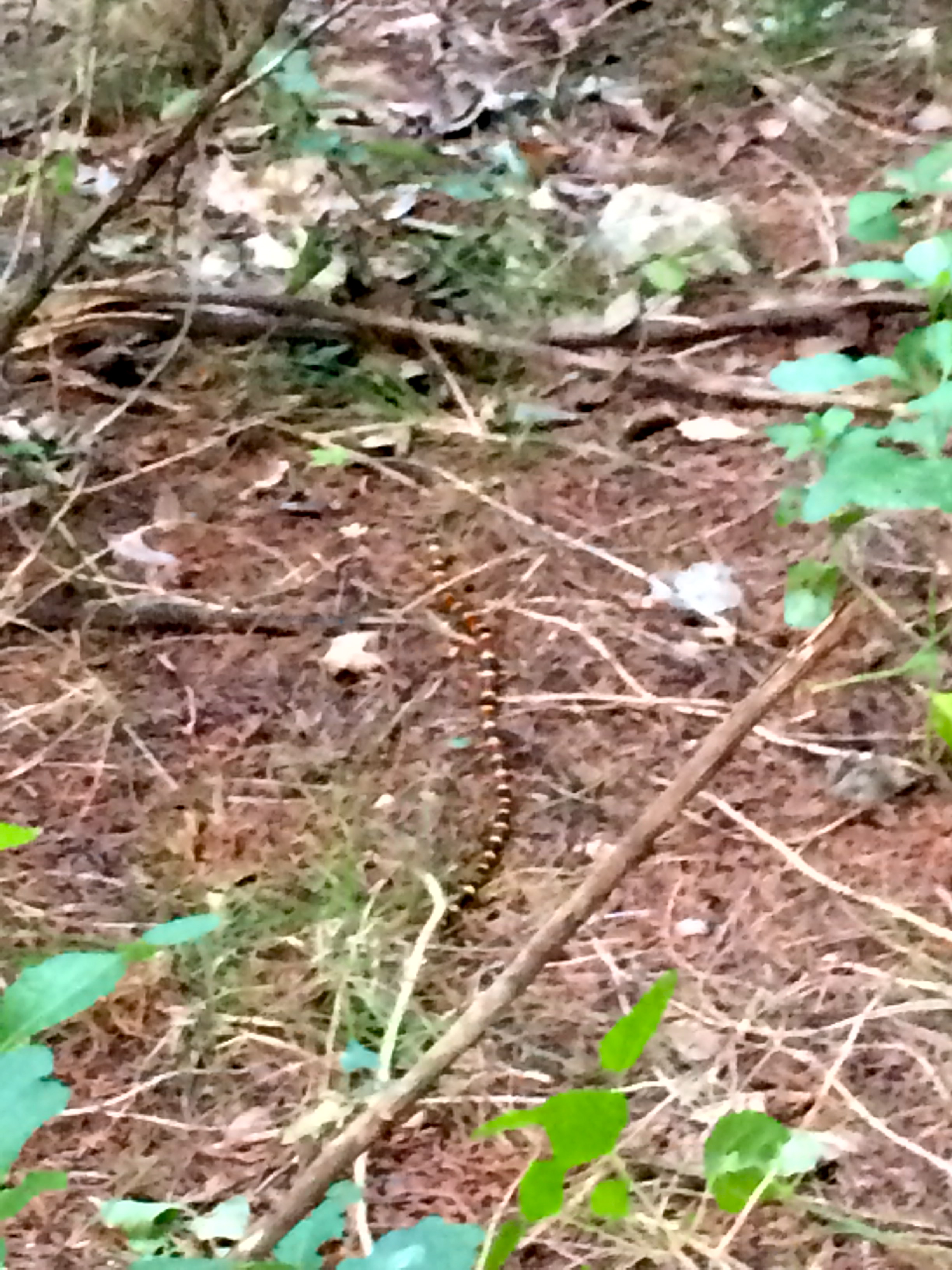 These are definitely poisonous, although you’d have to basically lay down and let it bite you to death to cause any real damage. I had spotted it while we were on our way back. It was making its way off the path into the cedar forest. As one of my favorite professors once said, “Humans think that animals respect paths the way that we do, like they know not to go on them. Wrong! Snakes don’t care about paths! Snakes will go anywhere they want!”